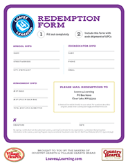 Bring the UPCs to your school’s designated collection box. The UPCs will be counted, and bagged, then mailed in with a completed redemption form. Checks are mailed to schools on a quarterly basis.